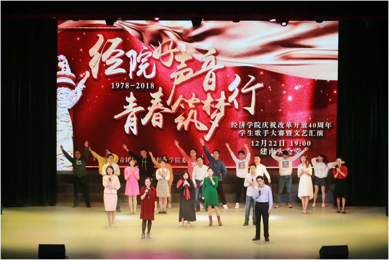 12月22日晚,经济学院庆祝改革开放四十周年学生歌手大赛暨文艺汇演——“经院好声音”在建南大会堂隆重举行,经院师生欢聚一堂,共同重温四十载音乐情怀,唱响新时代的最强音。