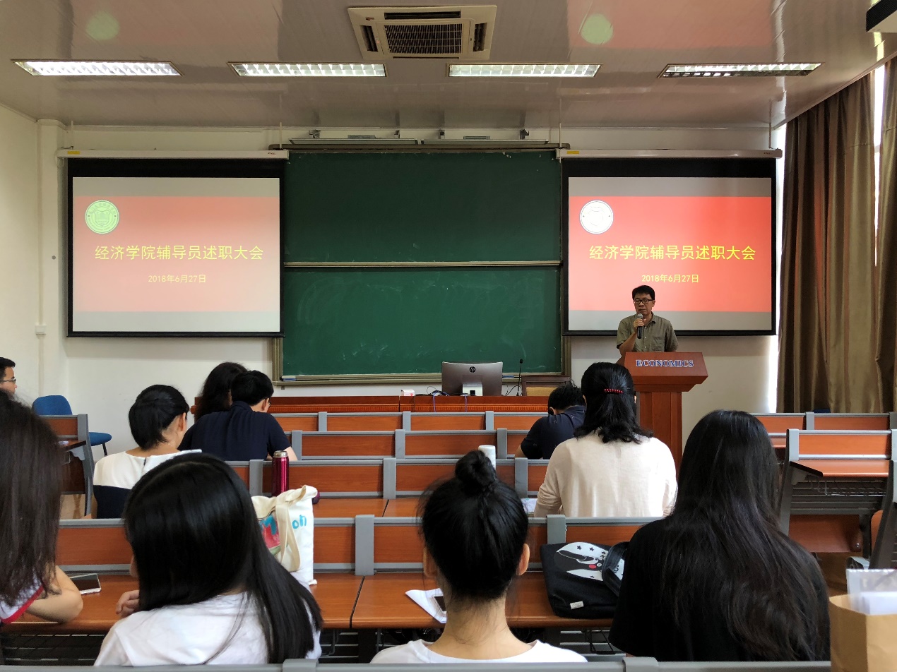 6月27日下午,经济学院辅导员述职大会在经济学院D235顺利举行。8名兼职辅导员和11名专职辅导员依次做述职报告。学院党委副书记邱旺土、周蕾出席报告会。