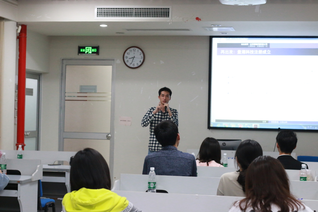 本次活动的第一个环节是嘉宾介绍,两位嘉宾结合自身的经历与同学们分享了创业干货与创业故事。
