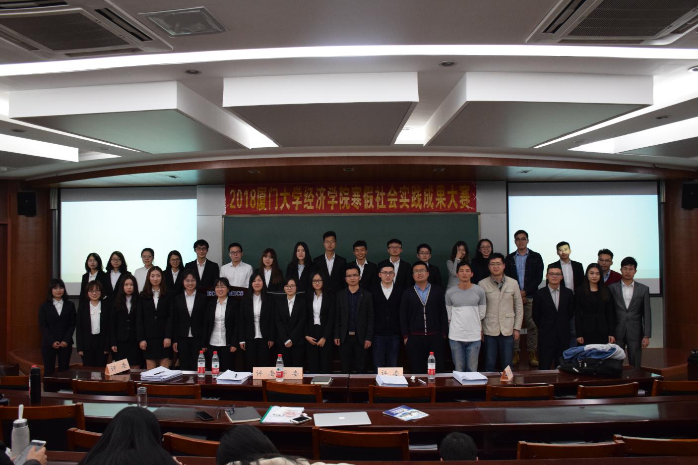 伴随着经济学院寒假社会实践活动落下帷幕,3月23日晚,社会实践成果展示大赛在经济学院N302如期举行。本次活动由共青团厦门大学经济学院委员会主办,经济学院研究生会实践部承办。参加本次成果大赛展示的有辅导员刘长青老师、4位博士研究生、研究生会委员,以及15支社会实践队伍的成员。各实践队伍依托自身专业知识,围绕社会热点问题,依次展示寒假期间实地调研和研究分析的成果。