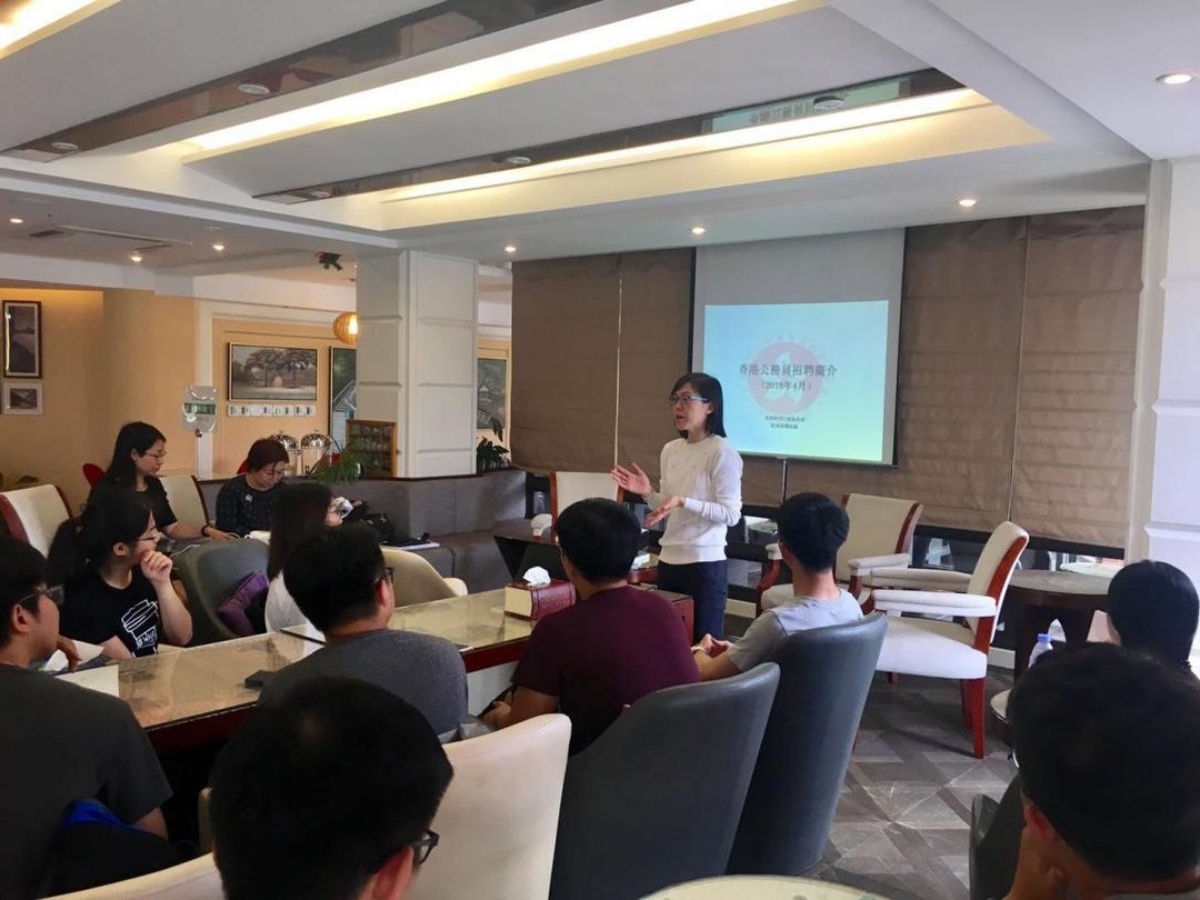 紧接着,英淑欣女士讲解香港公务员的招聘情况。英女士对香港公务员的类型作出了清晰简明的分类,并用香港政府公务员招聘的官方短片形象地向同学们介绍了香港政府公务员各个部门的报考方式以及工作内容,使同学们对香港公务员招聘的最新信息及政策有了更深入的了解。英女士还建议同学要针对面试环节提前做好准备,同时鼓励同学多参与福建地区香港校友的交流活动,建立良好的人际关系。