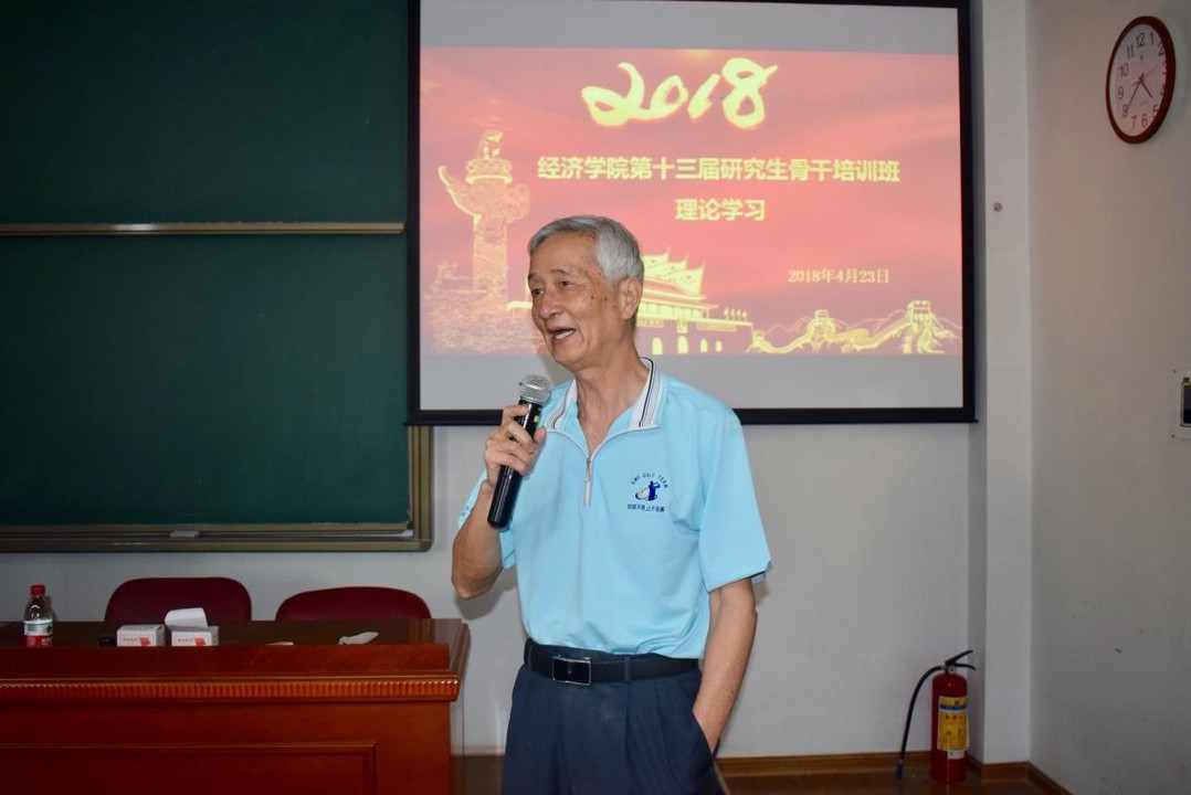为进一步提升学生骨干的理论素养,4月24日下午,由共青团厦门大学经济学院委员会主办的经济学院研究生骨干培训班理论学习在经济楼D236如期举行。活动邀请厦门大学关工委副主任、经济学院顾委会秘书长、原经济学院党委书记张兴国老师做题为“学科发展是硬道理”的演讲。本次学习由学院团委副书记、干训班指导老师陈启妍主持,学院研究生会委员及骨干培训班全体学员参与。