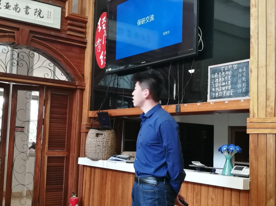 首先由保研至西安交大金融专硕的吴昊华开始,在简短地自我介绍后,吴昊华从五个方面出发与同学们交流。他先是讲述了自己准备保研的经历,为大家列出了其中几个关键点;其后, 吴昊华介绍了名校的夏令营活动,提醒大家需提早关注,并建议好好准备;说到读研方向选择的问题,他分别从专硕、学硕和硕博连读三种类型和专业方面分析了利弊和自己的看法;报名读研院校时则可以分为冲刺、目标、保底三个水平的院校分别进行投递;最后他谈到心态调整问题,宽慰我们放宽心态。