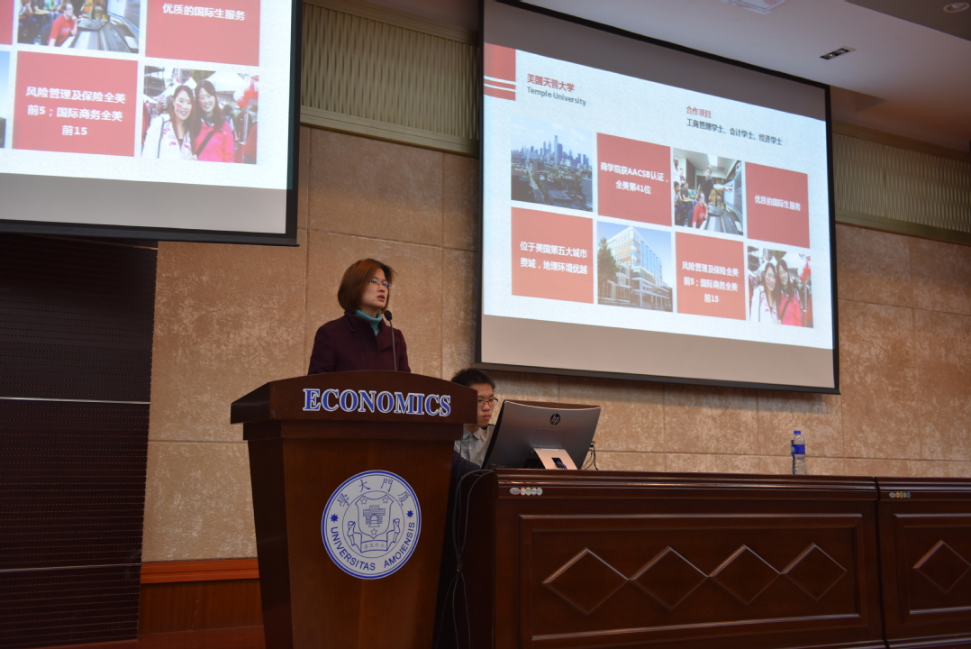 最后进行了寒假社会实践宣传动员,动员会还邀请了经院国际教育合作中心林嘉欣老师介绍经济学院1+3海外留学本科班返校宣讲的各项事宜,林老师鼓励来自全国各地的同学积极报名寒假返校宣讲活动,在实践中提升自我,增加实践经验。