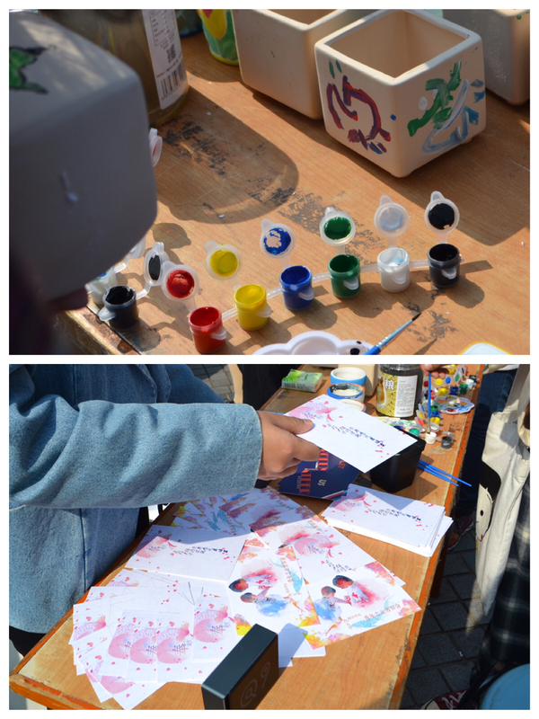 路演紧锣密鼓地进行着,诠释爱志愿服务队“知行合医”项目的队员详尽的给大家介绍了人工呼吸和心脏按压的具体步骤,并当场示范,吸引了不少同学前来围观,许多同学都跃跃欲试,并在亲身实践的同时获得了队员耐心的指导。而社会公益队准备的DIY小花盆也同样吸引了大家的注意力——自己亲手涂鸦的小花盆显得更为珍贵有趣。在听闻会将留下的花盆转赠给老人后,不少同学更是大方地留下了自己精美的作品。文益校园队准备精美的活动明信片与凭碎片寻照片的游戏,将志愿服务精神融入趣味,同样受到同学们的喜爱。下午两点,本次路演顺利结束,并且获得了数量可观的投票作为肯定。