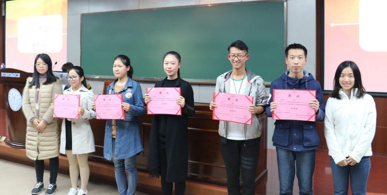 最终,芙蓉十406“君羊耳卯”宿舍和芙蓉二221“精致的猪猪boys”宿舍以出色的表现分别获得了“凤凰花开组”和“碧海潮生组”的一等奖。评委老师一起为获奖的优秀宿舍颁奖并合照。