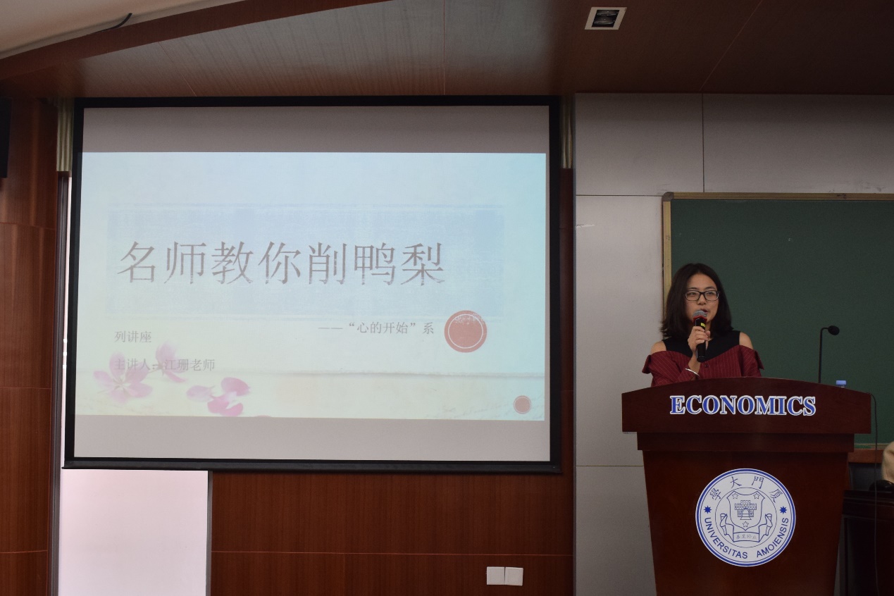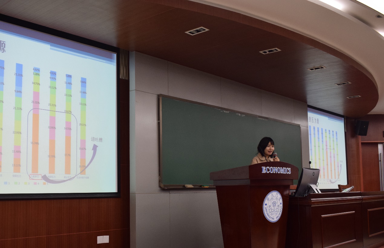 12月27日上午,由共青团厦门大学经济学院委员会主办、经济学院研究生会生活部承办的以“如何管控研究生压力”为主题的心理讲座在经济楼N302成功举办。厦门大学心理咨询与教育中心的江珊老师受邀出席本次活动,担任主讲人。本次讲座面向经济学院全体研究生,同学们热情高涨,逾100人参加本次讲座,其中不乏博士研究生。