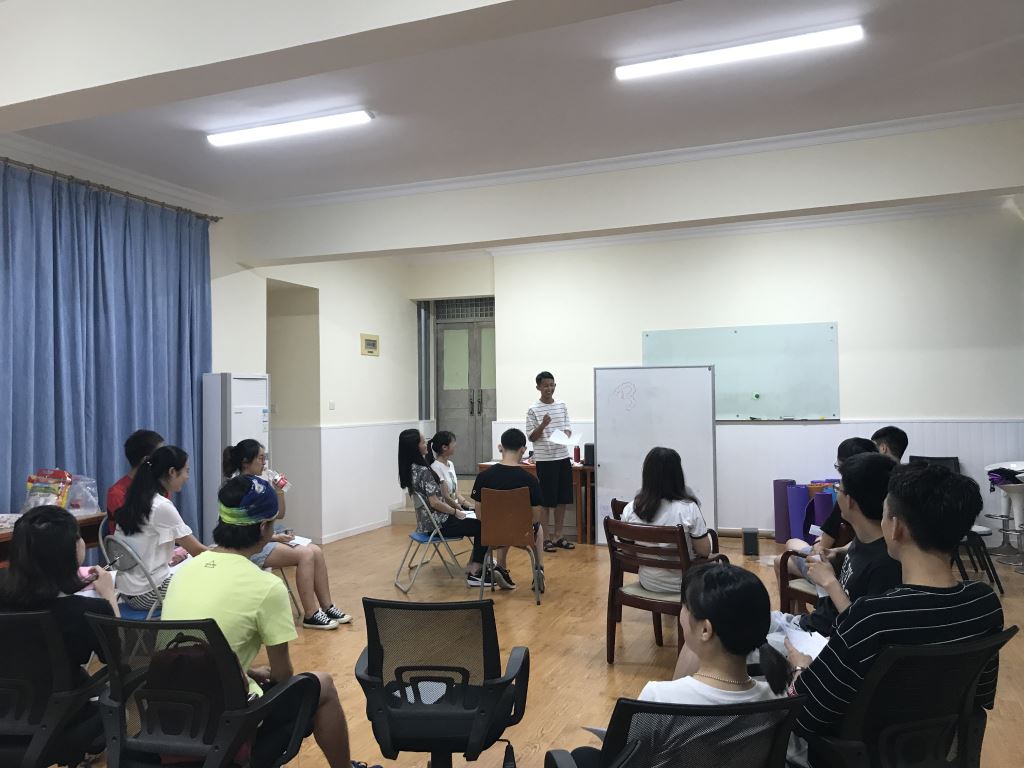 第二天的主题围绕“情绪认知”展开。活动开始用 “解手环”和“大风吹”游戏作为热身。接着,大家分析了一则案例——“是什么杀死了这位台球冠军?”。讨论中,团队成员分析了台球冠军争夺赛中产生的不良情绪以及带来的后果,认识到了控制情绪的重要,并分享了自己控制情绪“小绝招”。在“情绪测测测”环节,成员们测试了自己目前的情绪状态。欣喜的是,参加活动的同学们情绪状态都处于比较积极的范围。“开胃菜”过后,到了今天的“主菜”——“快乐大魔盘”。与昨天分享压力源不同的是,今天分享的是快乐的秘密。成员们分享了令自己快乐的事:吃货同学分享了自己私藏已久的美食目录,打游戏的同学分享了penta kill的快感,练字的同学分享了练完字后的愉悦……最后,“击鼓传花”这道“甜点”,让同学们仿佛回到了童年,欢声笑语中,结束了第二天的训练。