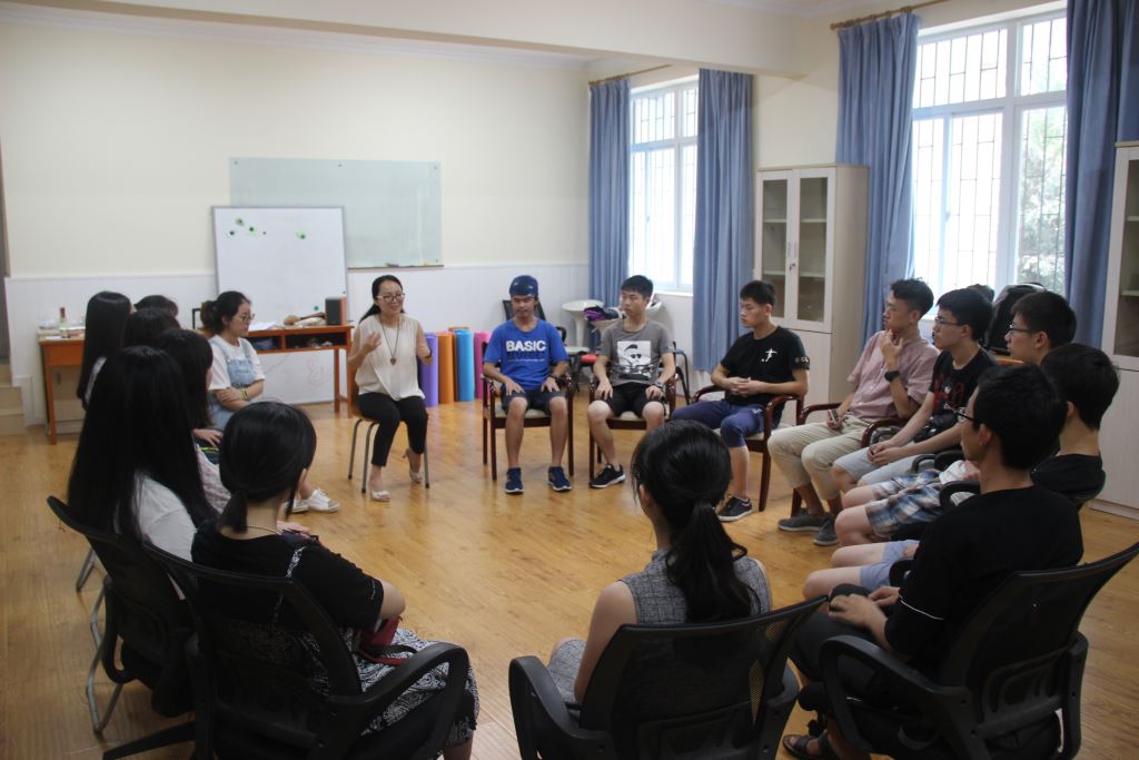 训练营开始的第一天,为了让大家相互了解,首先就进行了破冰游戏“趣味名字接龙”。伴着一个个独特的标签以及欢声笑语,同学们有了初步了解。随后又进行了“桃花朵朵开”和“背背佳”的活动,现场气氛达到了小高潮。最后来到了这天训练的最重要部分——“压力探索”,团队成员间相互分享自己的压力故事,了解成员在现实中的压力事件和所处的压力环境,对自身的压力源进行分析,认识、理解、正视压力,处理不良情绪。