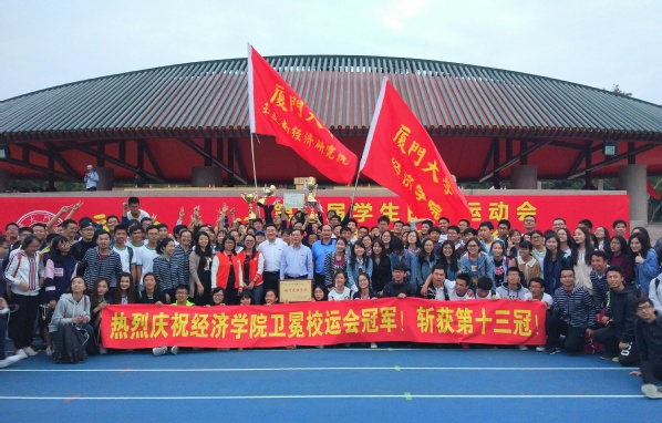 11月3日至4日,厦门大学第52届学生田径运动会、第18届教职工运动会、第26届老年人体育健身大会在思明校区演武田径场隆重举行。在两日的赛事中,运动员奋勇拼搏、积极进取,经济学院最终以团体总分4703分,研究生团体、本科生团体总分双双成功卫冕的优异成绩,斩获2003年以学院为单位竞赛以来的第十三个冠军!王亚南经济研究院成功创造历史最好成绩,荣获团体总分第八名,两院教职工荣获“教职工体育道德风尚奖”。据悉,在2016-2017年度,经济学院还荣获“全年体育总竞赛(思明校区)冠军”和“体育先进学院”称号。