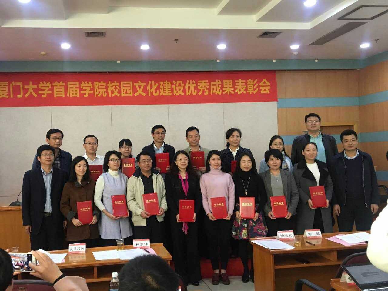 1月11日下午,厦门首届学院校园文化建设优秀成果表彰会在颂恩楼220顺利举行,校党委副书记林东伟、校党委宣传部部长徐进功、学生工作部部长夏侯建兵、校团委书记陈怀锋等出席了表彰大会。经济学科两项成果《经鹰荟萃网络文化室》、《王亚南经济研究院国际学生联合会》均荣获二等奖。