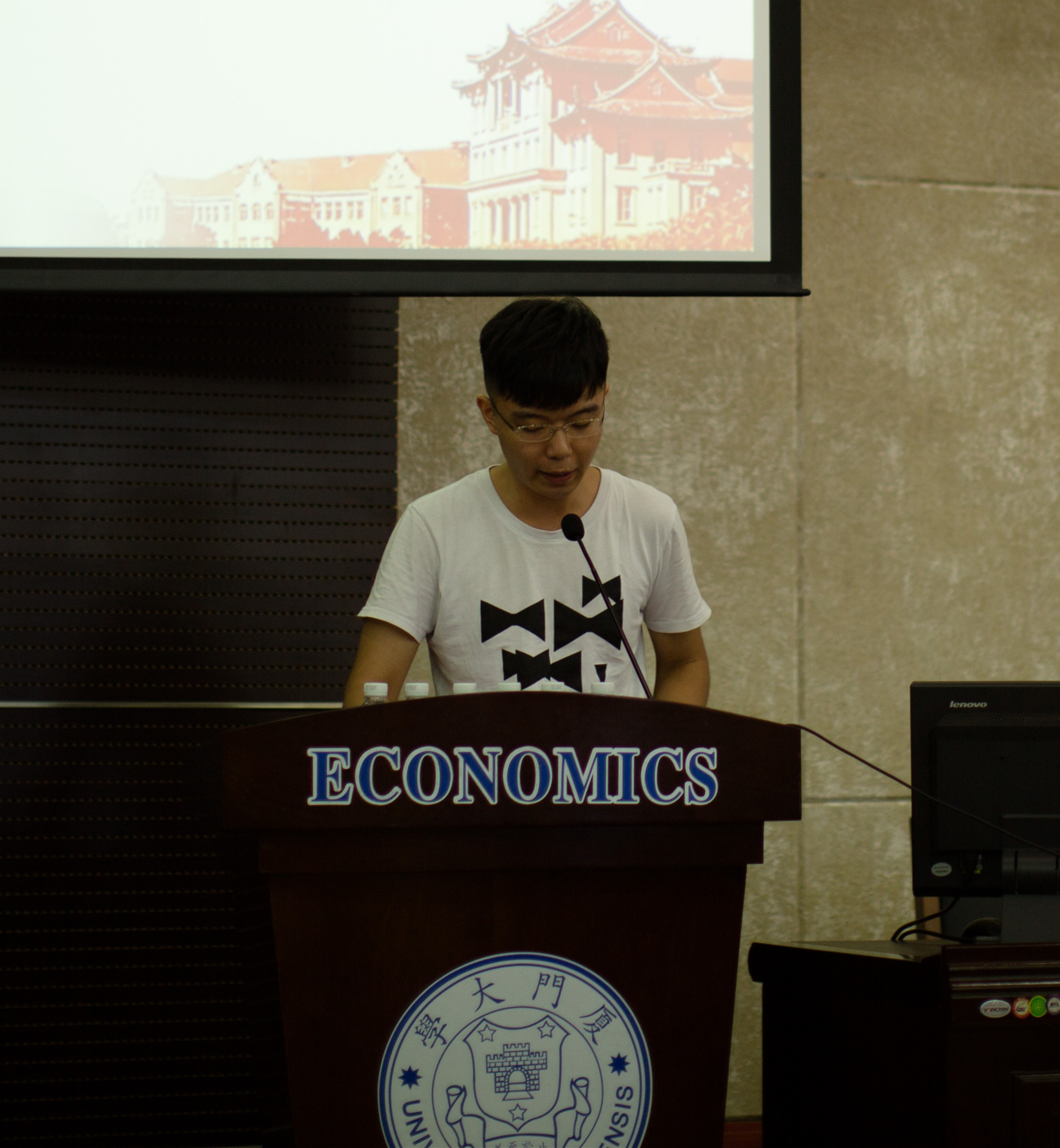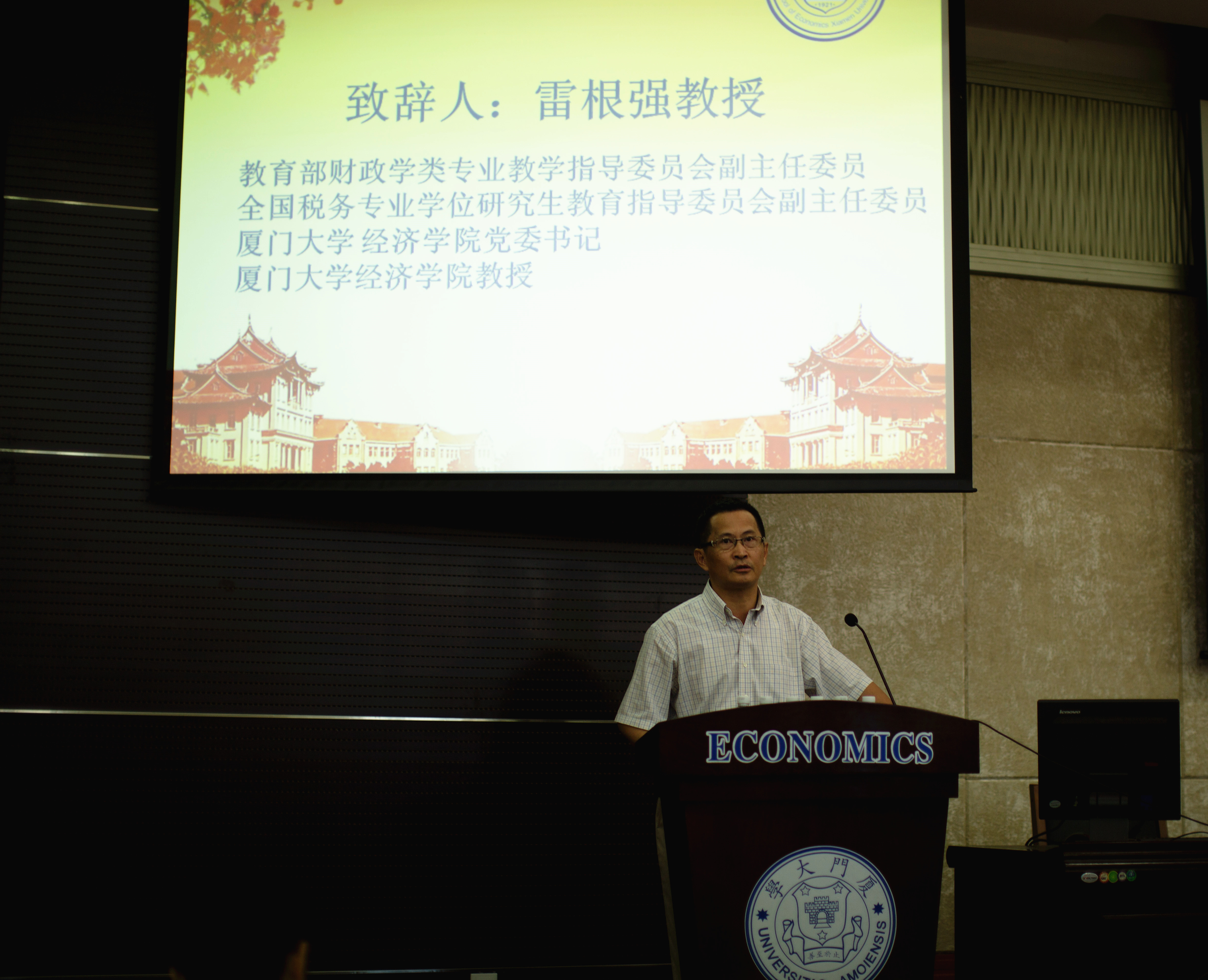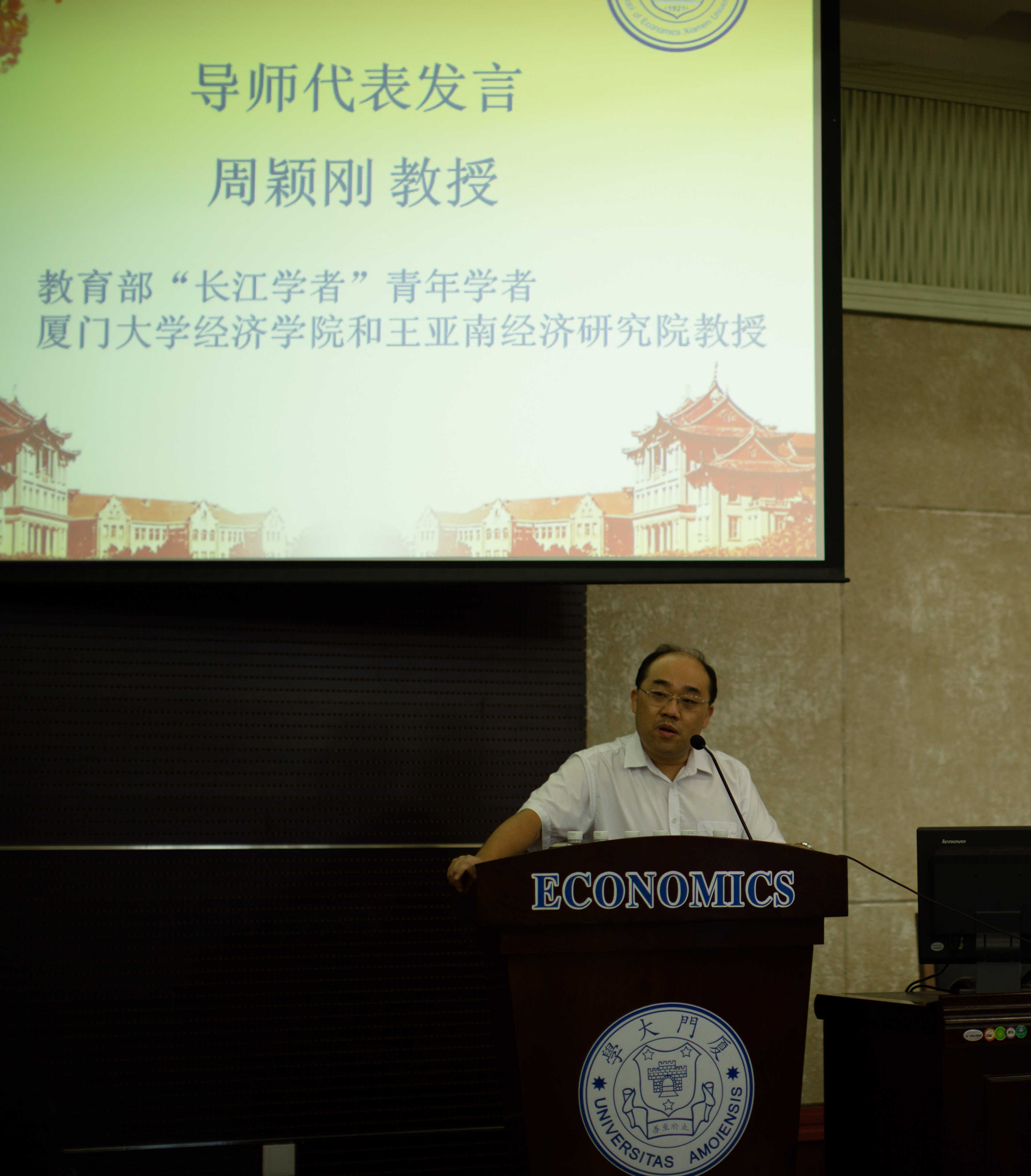 然后由党委书记雷根强教授发表致辞。他教导在座的新生们,努力成为德、智、体全面发展,对国家、对社会有贡献的人才。所谓徳,是指要有正确的人生观、价值观和政治观念;所谓智,是说要系统的掌握科学文化知识,尤其是本专业的专业理论和专业知识;所谓体,是提醒大家加强锻炼,保重身体。最后,雷书记也向大家提出三点建议,一要适应厦大经济学科课改要求,熟悉了解学院的各种规章制度,希望全体同学参与、支持学院的改革。二要学会跟导师沟通相处。三要有好的心态,经得起挫折,扛得住压力。