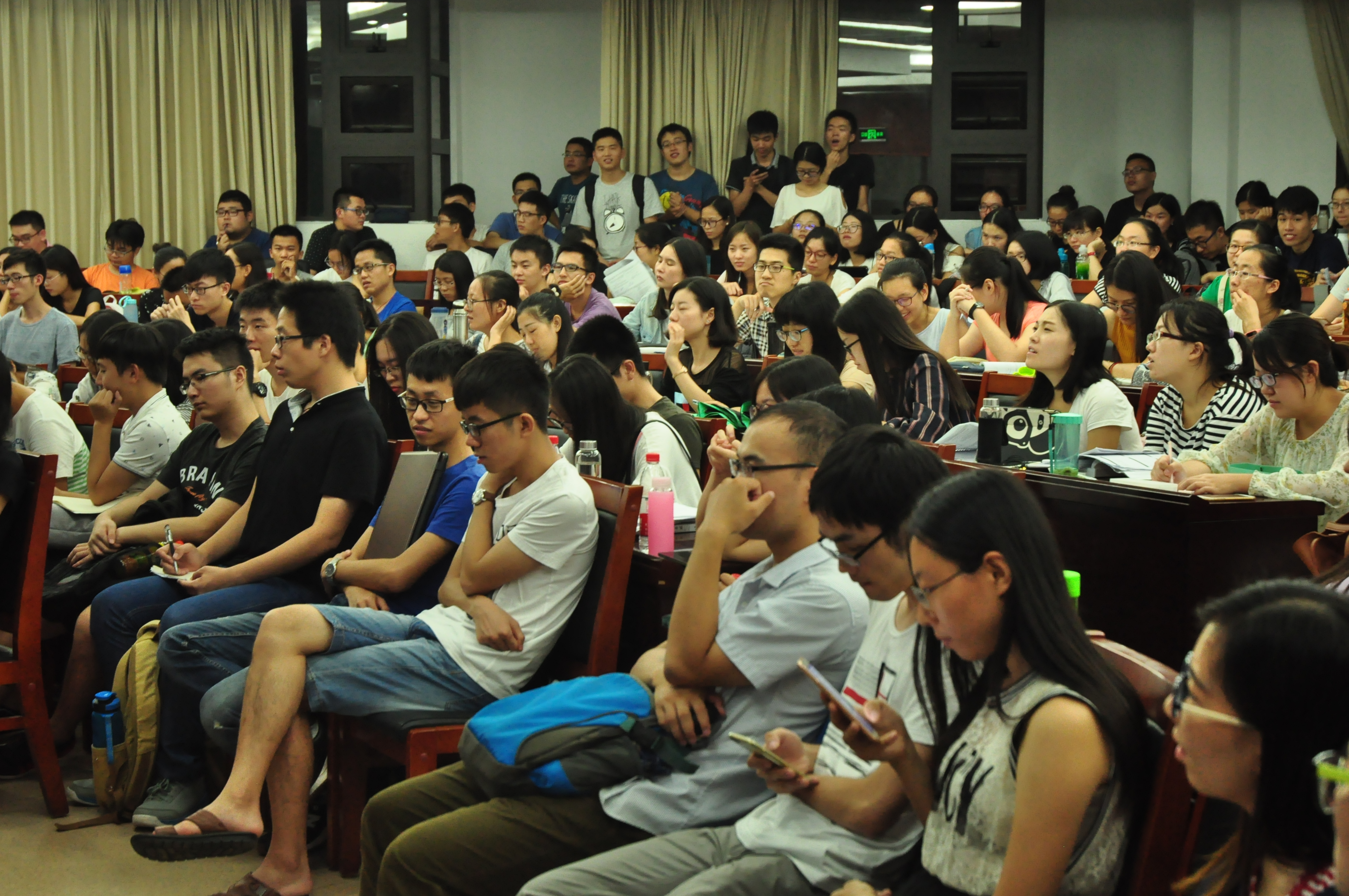 由于广大新生在“三高”学习上疑惑重重,此次交流会参与人数众多且热情度高涨。当天下午就有不少同学占好座位,在交流会开始前半个小时,教室已经座无虚席,有些晚到的同学坚持站着听完整场讲座,认真记下笔记。交流会历时一个半小时,在同学们的积极提问和热烈讨论中圆满结束。