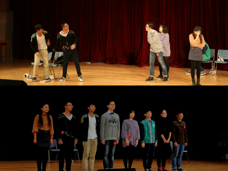 本次比赛经心演绎队带来的节目是《毕毕的朋友圈》。编剧在生活中挖掘素材,参照心理学书籍写出了独具匠心的剧本,演员们经过一次次的角色试演和长时间的辛苦排练,最终在舞台上真实地展示了这个由于朋友圈引发的故事----一个酷爱刷朋友圈的人和屏蔽他的朋友们之间的“撕逼”大战。舞台上,男一号毕毕(毕钟元饰)的出色表现赢得了阵阵掌声,这个略显阴柔,有些自卑,希望得到关注的角色,男主角拿捏地十分到位,每一个动作都精准优雅,每一句台词都语气贴切。此外,呆萌坦诚的33(宋宁宇饰),美丽体贴的云芬(高云芬饰),性急心软的海书(孙海书饰),张扬率直的学霸(周志刚饰),忧心考试的小安(董纬华饰)也各自将角色诠释地淋漓尽致。