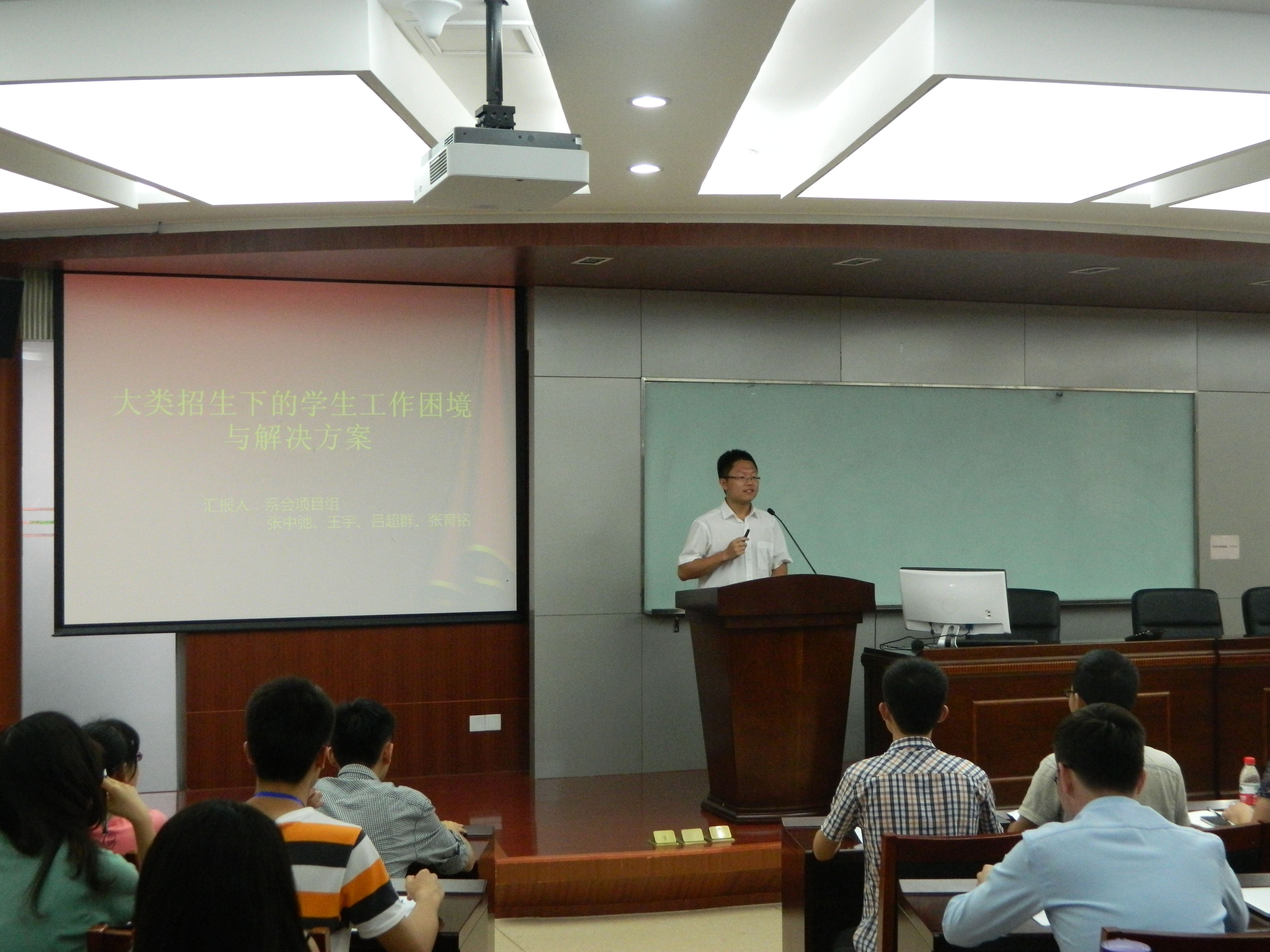 今年5月,厦门大学经济学院举行了学生骨干培训班开班仪式暨学生会工作交流会,会后各个小组便选取议题进行议题研讨。通过一个多月的数据分析和反复调研,各组都针对本组议题精心制作了解决方案,本次方案研讨会选取其中五个小组代表全体干训班成员进行议题汇报,通过现场讨论完善方案。事实上,本次方案研讨会也确实起到了沟通交流的作用,提高了学生和老师间的交互程度,为骨干培训班画下了一个圆满的句号。