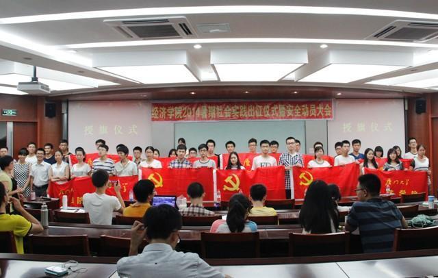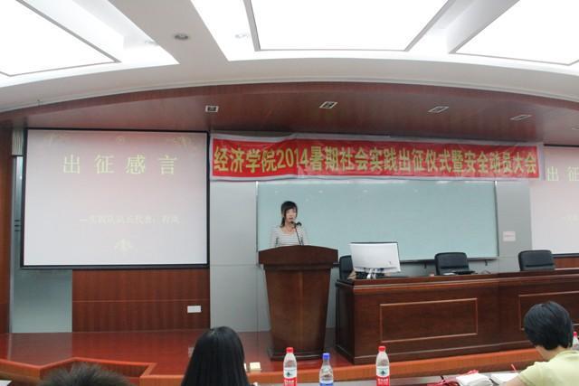 7月3日晚,经济学院2014暑期社会实践出征仪式暨安全动员大会在经济楼N302顺利举行。院党委副书记王艺宏,团委副书记魏艳,各系辅导员以及即将出征的实践队代表们参加了出征仪式。