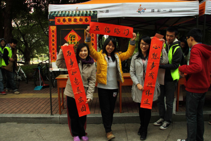 21日,经济系迎新年系列活动第二弹——“迎新年,写春联”在芙蓉二及海韵十两地同时热闹开展。经济系书法高手肖坤、王心怡、张宏杰以及来自艺术学院和书法协会的同学到场挥毫泼墨,为同学们书写赠送春联。活动也得到了大一新生和其他院系同学的广泛关注,纷纷到场领取新年春联,希望带着这满满祝福的话语,在新的一年考试顺利、好事连连!