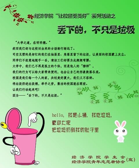 这是经济学院“让校园更美好”之“随手文明”学子文明修身倡议书的响亮口号。