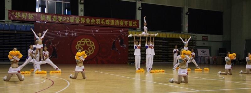 “华昇杯”福建省侨界业余羽毛毬邀请赛是我省侨界的一项传统赛事,也是我省一项具有较大社会影响的业余赛事。这次应邀参加“华昇杯”福建省第22届侨界业余羽毛球邀请赛开幕式表演,是经济学院啦啦操团队积极响应党中央的号召,走出校园,服务地方,在为期两个月的训练过程中,队员们你争我赶,攻坚克难,凝心聚力,奋勇拼搏,以期用汗水再创辉煌,用实际行动为十八大的顺利召开献礼!