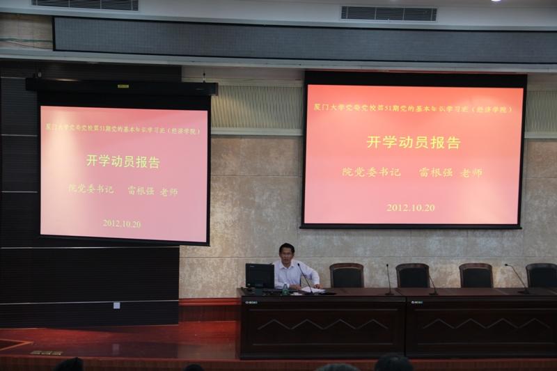 10月20日上午9时,厦门大学党委党校第51期党的基本知识学习班(经济学院)开学动员报告会暨首场讲座在经济楼N402隆重举行。