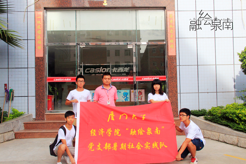 2012年7月23日,“融绘泉南”实践队今日兵分两路,一路由王霄带队去探寻小作坊作为课题研究的对象,另一对由许青云带队,采访大型企业卡西龙作为对照的发展企业。两部分结合作为,实践队对晋江模式发展的一种新的体会和认知。