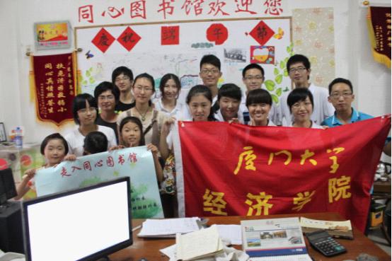 7月15日下午,厦门大学经济学院“温情融厦”暑期社会实践队携手软件学院“同心”实践队“跨海”前往同安区同心图书馆开展公益活动。路途颠簸,烈日炎炎,抵挡不住实践队员们奉献爱心的热情。
