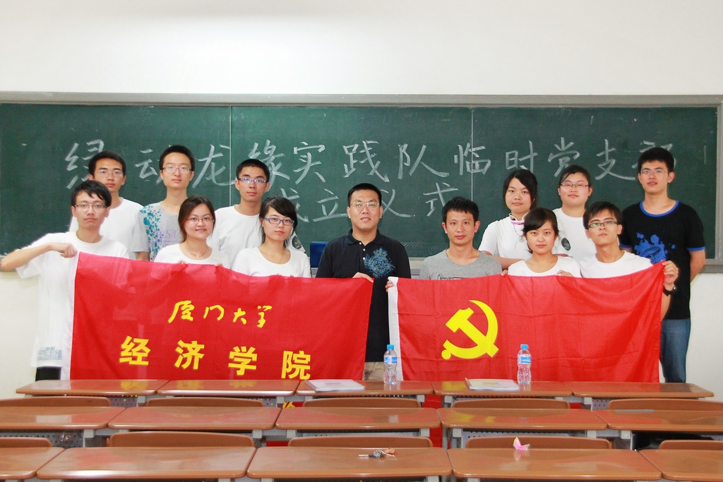 最后,经济系辅导员袁愉年老师代表经济学院党支部宣布厦门大学“绿动龙缘”实践队临时党支部正式成立,队员们都报以热烈的掌声。