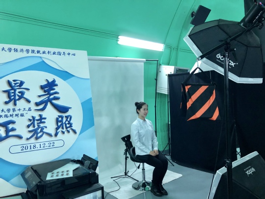 2018年12月22日,由厦门大学经济学院就业创业指导中心主办的“职场对对碰”系列之最美正装照活动顺利举行。本次活动由麻雀照相馆提供正装,进行拍摄并提供照片后期精修服务,旨在为同学们提供高质量的免费正装照,增强其求职与升学的竞争力。